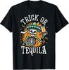 Machine Washable Top| Men's Vintage Skeleton Tequila Graphic Tee - Dia De Los Muertos, , Short Sleeve, Round Neck