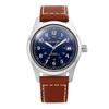 The Hamilton H64455523 Khaki Field King Men's Leather Watch is an automatic watch from Hamilton's Khaki Field collection. This model features a dark brown calf leather strap combined with a stainless steel case, suitable for men with a dial diameter of 40mm and a lug width of 20mm. The case is 11.15mm thick, showcasing a slim silhouette.