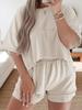 Yazlık Günlük Takım Kadın Tişört Yuvarlak Yaka Kısa Kollu Üst Şort Seksi İki Parça Kadın Seti