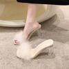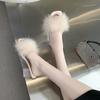 Moda Terlik Bayan Yaz yeni açık burunlu peluş tilki kürk kalın parmak arası terlik Seksi aile partisi kare burunlu basit topuklar Kristal