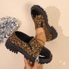 Kadın Büyük Beden Düşük Bilekli Leopar Desenli Ayakkabılar İngiliz Stili Kalın Tabanlı Slip-on Deri Loafer'lar Dış Mekan Rahat Günlük Ayakkabı