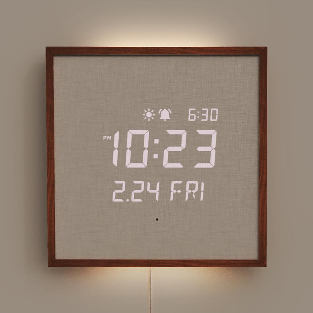 mooas Wooden Frame Backlit Nightlight LED Wall 3 Usage Selectable Can be Installed in 2 Wall Multifunctional LED Alarm Hour Remote 4 Levels of