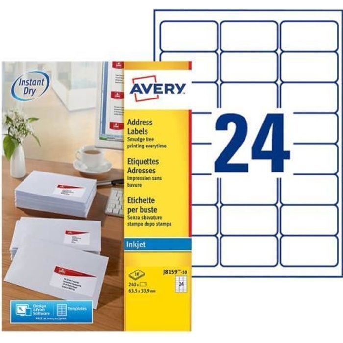 Avery - 240 étiquettes autocollantes ''montimbrenligne'' (63,5x33,9 mm) imprimables. impression jet d'encre. j8159-10