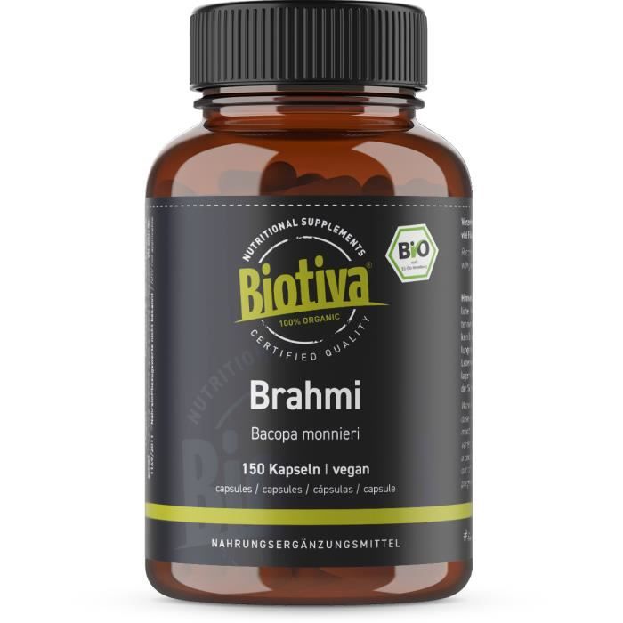 Capsules de brahmi bio - 150 capsules véganes - 500mg par capsule - bacopa monnieri - hysope d’eau - végan - garanti sans additifs