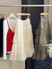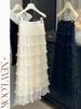 Kadınlar için Beyaz Katmanlı A-Çizgi File Etek, Orta Uzunlukta, 2024 İlkbahar/Yaz Koleksiyonu.