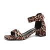 Kadınlar için Büyük Beden Konfor Ayakkabılar Blok Topuklu Leopar Sandaletler Yazlık Takım Bayan Bej Büyük Kalın Baskılı Kadife Kız Çocuklar