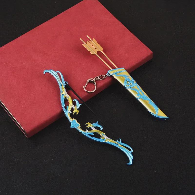 Green Hunting Bow Set: Original Peripheral Three-Piece with Ritual Bow, West Wind Bow, Quiver, and Metal Alloy Model.