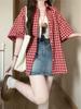 Green Checkered Shirt Women's Summer New Loose Casual Top Korean Style Simple Versatile Ladies Shirts