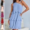 Summer Women's Dress Slant Shoulder Layered Patchwork Hem Solid Colour Dresses