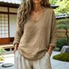 Günlük Şıklık: Bu gömleğin uzun kollu V yakalı siluetiyle rahatlığı ve şıklığı kucaklayın. Bol kesimi, her durum için mükemmel, rahat ama şık bir hava yayar.