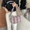 Yazlık Basit ve Moda Turuncu Ekose Çanta Aynı Stil Hilal Sanat Çantası Tek Omuz Koltuk Altı Çantası