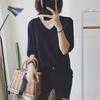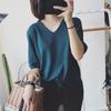 2019 Kadın İlkbahar/Yaz V Yaka Bol Düz Renk Kısa Kollu Üstler