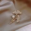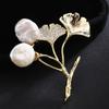 Fashionable Ginkgo Leaf Brooch: Gold-Plated Copper with Zircon and Pearl Details
