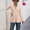 Avrupa ve Amerikan modasından ilham alan bu şık Kadın Düz Renk Waffle Düğmeli Üst ile keskin sonbahar havasını kucaklayın. Yüksek kaliteli polyesterden üretilen bu üst, hem konfor hem de şıklık sağlayan sofistike, dokulu waffle örgüye sahiptir.. Düz renk şeması, karıştır-eşleştir çok yönlülüğü için mükemmeldir, uzun kolları ise sezon boyunca sıcaklık ve stil sağlar.. Düğme detaylı şık V yakasıyla bu üst, klasik çekiciliği modern tasarımla zahmetsizce bir araya getirerek sonbahar gardırobunuzun vazgeçilmez bir parçası haline gelir.
