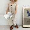 Korean-Style Kids' Trendy Summer Button Jumpsuit Casual Pants