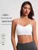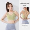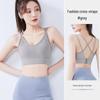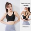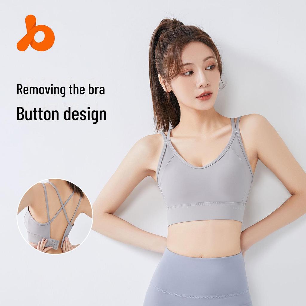 Juyitang V-Neck Padded Sports Bra with Cross-Shoulder Straps and Back Buckle for Yoga