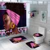 4 adet tam Set banyo perdesi seti zarif afrika siyah kadın duş perdesi kancaları Modern banyo paspası tuvalet kapağı kaymaz banyo paspasları