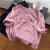 Pink Short Sleeve T-shirt Women's Loose Casual Round Neck Letter Print Thin Large Size Summer Top