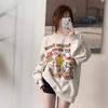 Kadınlar İçin Sonbahar ve Kış Aylarında Yeni Amerikan Tasarımı Çift Uzun Kollu Bol Üst Karikatür Tavşan Baskılı Yuvarlak Yaka Sweatshirt