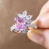 Lüks Kadın Kız Büyük Kristal Pembe Kare Zirkon Taş Yüzük Renkli Düğün Takıları Kadınlar İçin