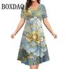 Yeni 2025 Elbiseler Kadın 3D Çiçek Baskılı Kısa Kollu Yazlık Günlük Kazak Moda Bol Kadın Elbiseleri