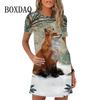 Hayvan Serisi Kadın Kısa Kollu Bol Elbise Aslan Tie Dye 3D Baskılı Oversize Günlük Sokak Stili Bayan Yazlık Elbise