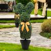 Ornamental Artificial Tree With Golden Bow, Imitation Boxwood Decoration, Suitable For Indoor And Outdoor Porch Decoration