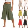 Linen Pants For Women Casual Solid Drawstring Elastic Waist Cropped Pants