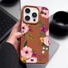 Matte Leather Texture TPU Soft Phone Case For iPhone 16 Pro Max 15 Pro 14 13 12 11 Floral Print Slim Shockproof Bumper Cover