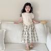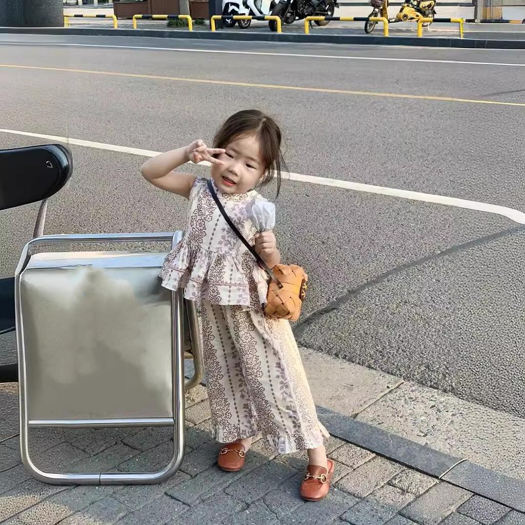 Kız Çocuk Yaz Etnik Stil Çiçekli Set İnce Kolsuz Günlük Üst + Dantelli Düz Pantolon İki Parça Set