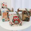 Kadın Hayvan Etnik Stil İşlemeli Tote Çanta Retro Baykuş Fil Baskılı El Çantaları Bayanlar Yeniden Kullanılabilir Alışveriş Omuz Çantası