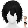 Chrollo Lucilfer Cosplay Peruk Anime Ortadan Ayrık Kısa Siyah Isıya Dayanıklı Sentetik Saç Cadılar Bayramı Parti Perukları + Peruk Filesi