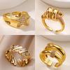 Zircon Double Star Rings For Women Girls Stainless Steel Gold Color y2k Ring 2024 New Trending Wedding Party Aesthetic Jewelry