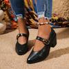 Women High Heels Casual Shoes Summer New Chunky Shallow Shoes Designer Elegant Dress Buckle Shoes Party Pumps Zapatillas Mujer