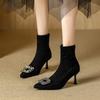 Kadın Örme Bilekte Botlar 2024 Yeni Sivri Burun Esnek Kalın İnce Yüksek Topuklu Moda Rhinestone Çorap Kısa Bot Botas De Mujer