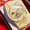 OLEVS Ay Evresi Krono Lüks Saat Elmas Otomatik Erkek Saatleri Zımparalanmış Çelik Kordon İskelet Volan Mekanik Kol Saati