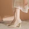 Slip-on Bling Fashion High Heel Solid Shoes Women 2024 High Quality PU Autumn Square Heel High Heel Shallow Square Toe Pumps