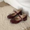 Retro red bow thick heel light mouth single shoes women's 2025 new versatile round head height increase Mary Jane small leather shoes