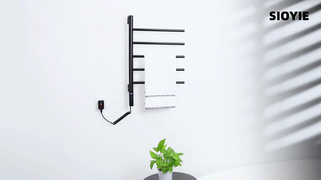 SIOYIE Electric Heated Towel Rack, Rotating Towel Warmer, Smart Bathroom Radiator, Plug-In/Hardwired Heater
