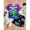 2 Parça Erkek Çocuk Günlük Yazlık Kıyafet Seti, Canavar Kamyon Baskılı Çok Yönlü Kısa Kollu Tişört ve Şort seti