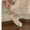 Kalın topuk beyaz kabarık ayakkabılar Mary Jane tek ayakkabılar kadın ayakkabıları 2025 ilkbahar ve sonbahar yeni peri rüzgarı kadife sıcak pamuklu ayakkabılar