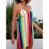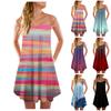 Yaz Gökkuşağı Renkli Batik Baskılı Plaj Elbisesi Kadın Kolsuz Elbiseler Parti Plaj Giyim Kız Askılı Midi Gece Elbisesi Giyim
