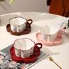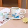 Çiçek Desenli Seramik Fincan Kore Tarzı Fincan Tabağı Seti Elle Şekillendirilmiş Düzensiz Kahve Süt Fincanı İkindi Çayı Sofrası Yemek Takımı Ev İçin Hediyeler
