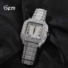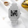 PINTIME Brand Square Men Quartz Watch Ice Out Luxury Full Diamond Ultra Thin Waterproof Hip Hop Wristwatch