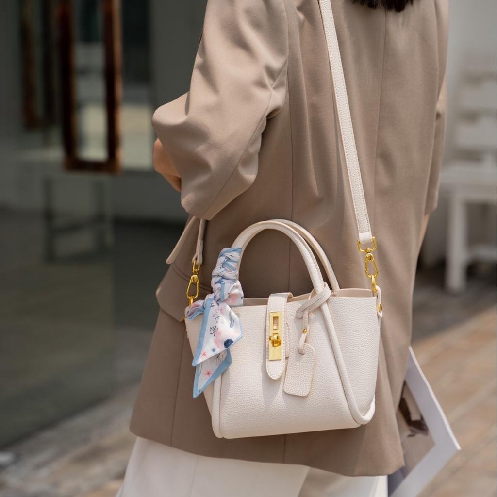 Spring and Summer Leather Vegetable Basket Hand Bucket Bag Women's Leather Crossbody Bag Shoulder Women's Bag Scarf
