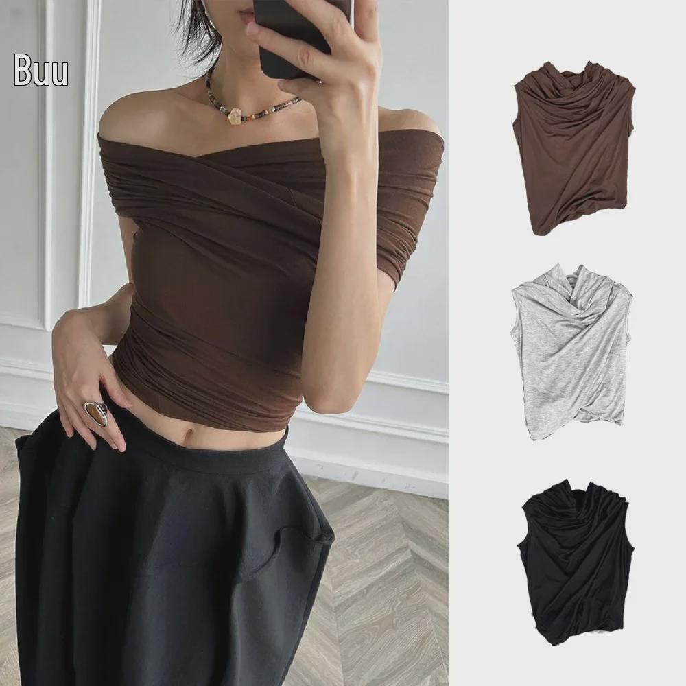 [Final Sale, No Refunds] 3D Rotating Cut Modal Elastic One-Shoulder Top - Sexy, Slim, Early Spring Collection