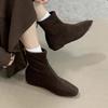 Alçak topuklu kısa botlar kadın yeni 2024 sonbahar ve kış kadife botlar ince kadın botları kare burunlu kısa botlar tasarım duygusu Martin botlar