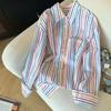 Colorful Button Pink Striped Women's Shirt Summer Short Sleeved College Style Top Loose Turn-down Collar Female's Shirts