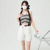 Bu şık kadın denim şortlarla yaklaşan mevsimleri kucaklayın, rahat ve trend bir kesim için yüksek kaliteli denim malzemeden üretilmiştir.. Elastik Kore tarzında tasarlanan bu şortlar, siluetinizi vurgulayan yüksek bir bel çizgisine ve sofistike bir dokunuş katan şık bir kemere sahiptir.. Günlük ama şık bir görünüm için mükemmel olan bu şortlar, ilkbahar ve yaz gardırobunuza çok yönlü bir ektir.