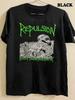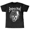 Erkek Siyah 200g Pamuk Bisiklet Yaka Kısa Kollu T-Shirt "Repulsion" Grup Logolu Isı Transfer Baskılı